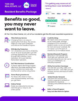 *All residents are enrolled in the Resident Benefits Package (RBP) which includes HVAC air filter delivery (for applicable properties), credit building to help boost your credit score with timely rent payments, $1M Identity Protection, utility concierge service making utility connection a breeze during your move-in, our best-in-class resident rewards program, and much more! More details upon application.